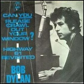 At the time, The Byrds’ chiming take on Pete Seeger’s “Turn, Turn, Turn” was No. 1 on the charts so it seemed “folk rock” was having its day. Since Bob had scored well on the charts with “Like A Rolling Stone,” which went to No. 2 and he followed up that chart success with “Positively Fourth Street,” which rose to No. 7, the idea was “Can You Please Crawl Out Your Window,” would be next. Nope.